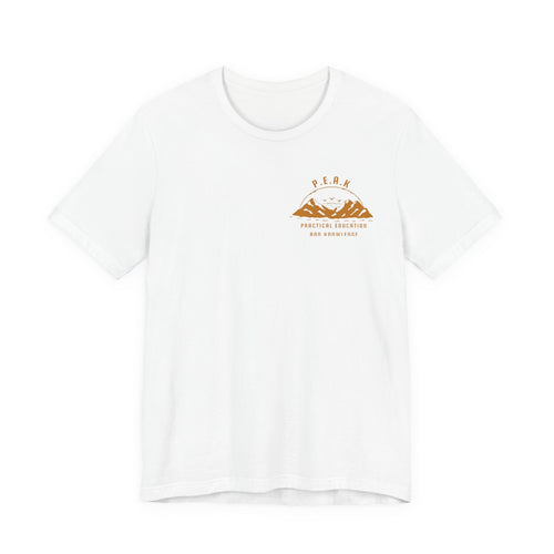 This kids’ tee features the official PEAK logo on the front, representing Practical Education and Knowledge and our belief that learning looks different for every child.